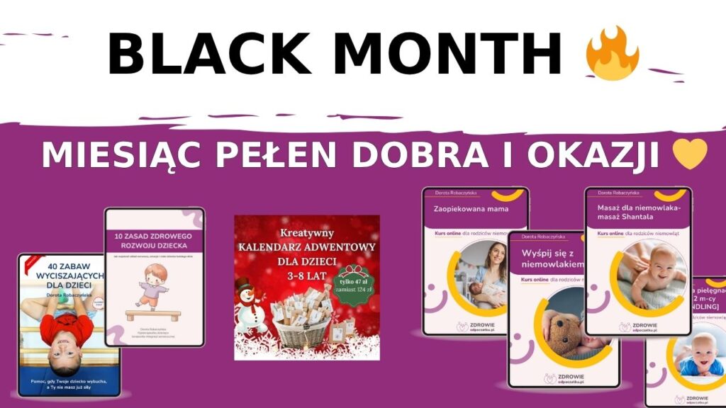 Dlatego przez cały miesiąc przygotowałam dla Ciebie coś wyjątkowego: niższe ceny na moje kursy, e-booki i materiały, które pomogą Ci lepiej zrozumieć swoje dziecko i codziennie wspierać jego rozwój.